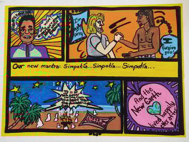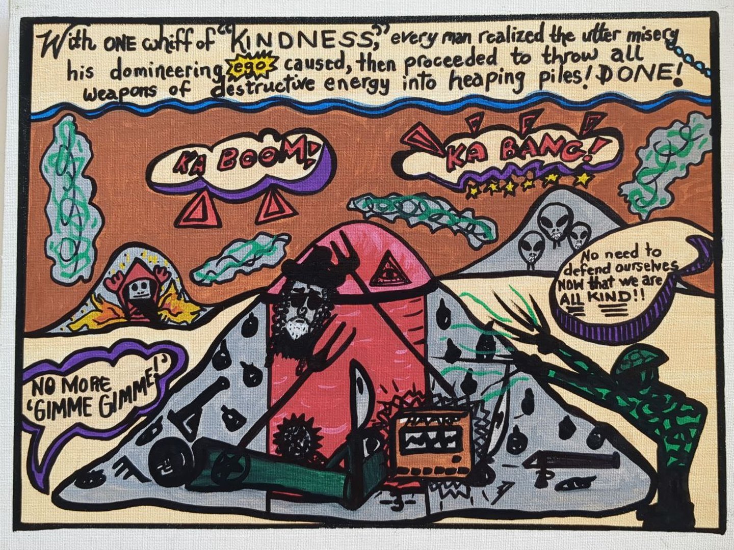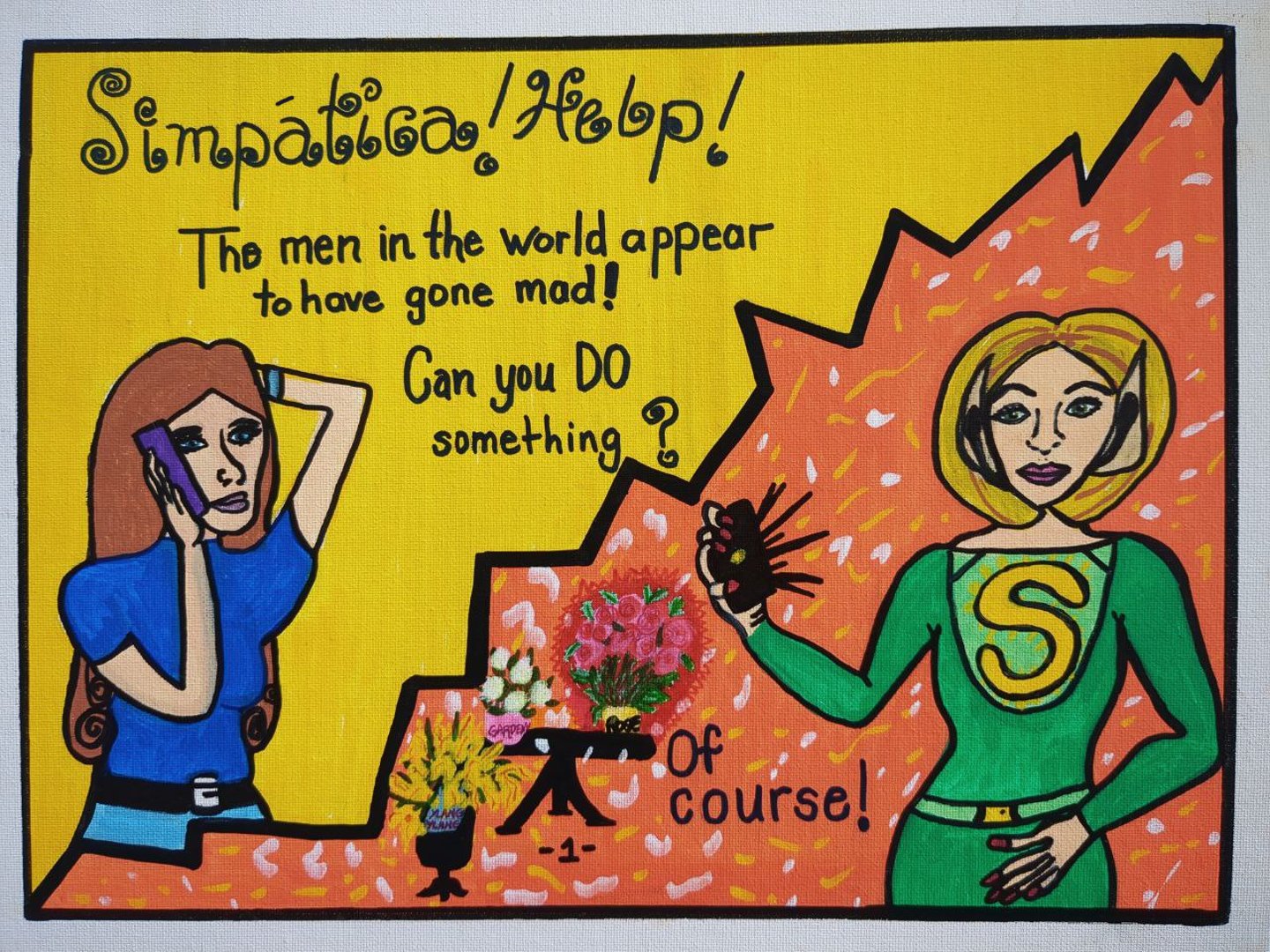 Inspired by scrap book comic book paper for a lesson, Breeze's example was burned in a fire.