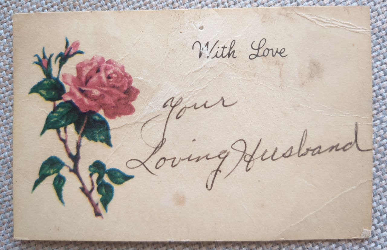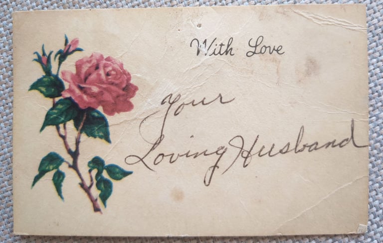 This flower bouquet card sent to his loving wife is one of two items of her father's remaining in Debra's possession.