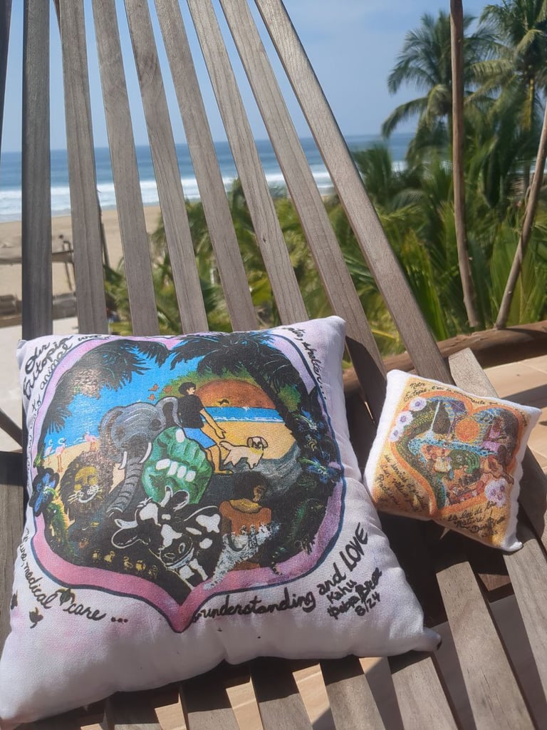 Comfy Cojines! Debra's masterpieces can be a comfy keepsake! Collect all three! Don't forget your cute kitty! She'll love the catnip stuffed 12 cm2 pillow for loco play or comfy sleep!
